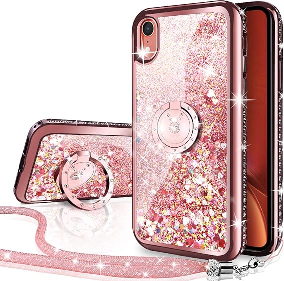 Amazon Com Silverback Iphone Xr Case Moving Liquid Holographic Sparkle Glitter Case With Kickstand Bling Diamond Rhinestone Bumper W Ring Stand Slim Protective Apple Iphone Xr Case For Girls Women Rose Gold Electronics