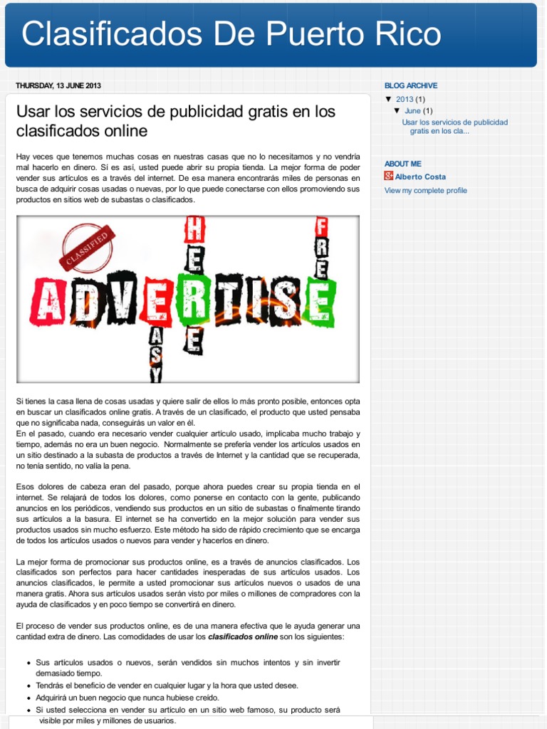 Usar Los Servicios De Publicidad Gratis En Los Clasificados Online Internet Publicidad