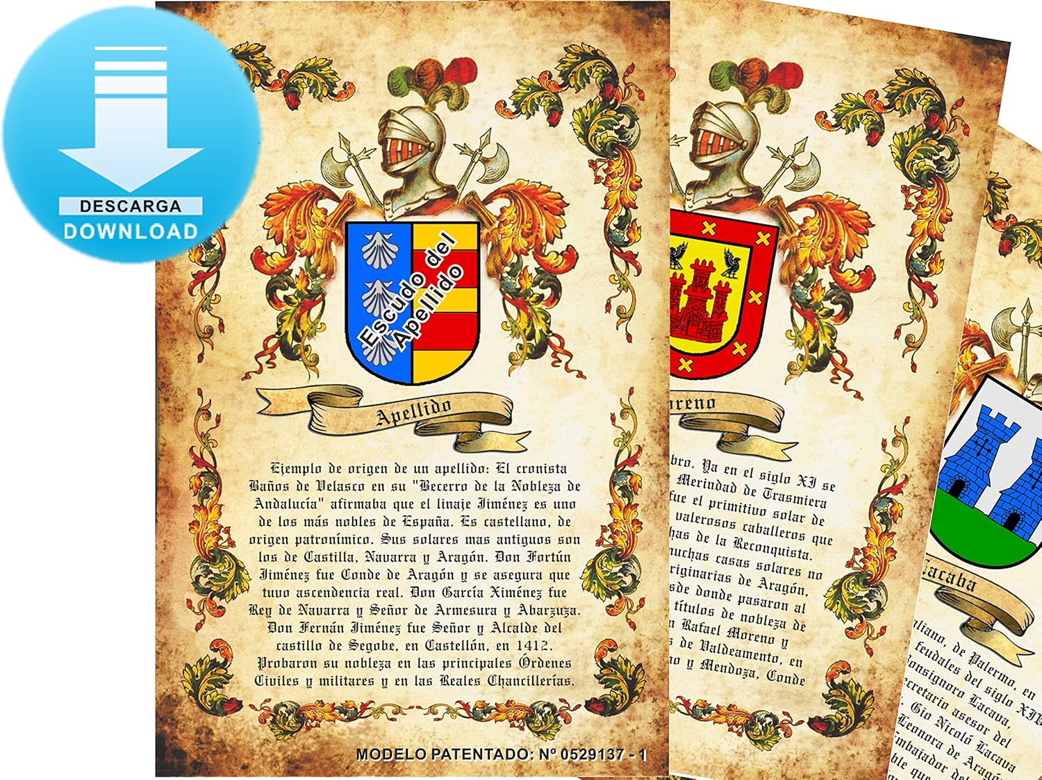 Imagen Pergamino Escudo Heraldico De 1 Apellido Origen Este Producto Es Una Descarga De Imagen En Jpg Que Enviamos Por Email En Unas Horas Puede Imprimirlo En Din A 4 O Din