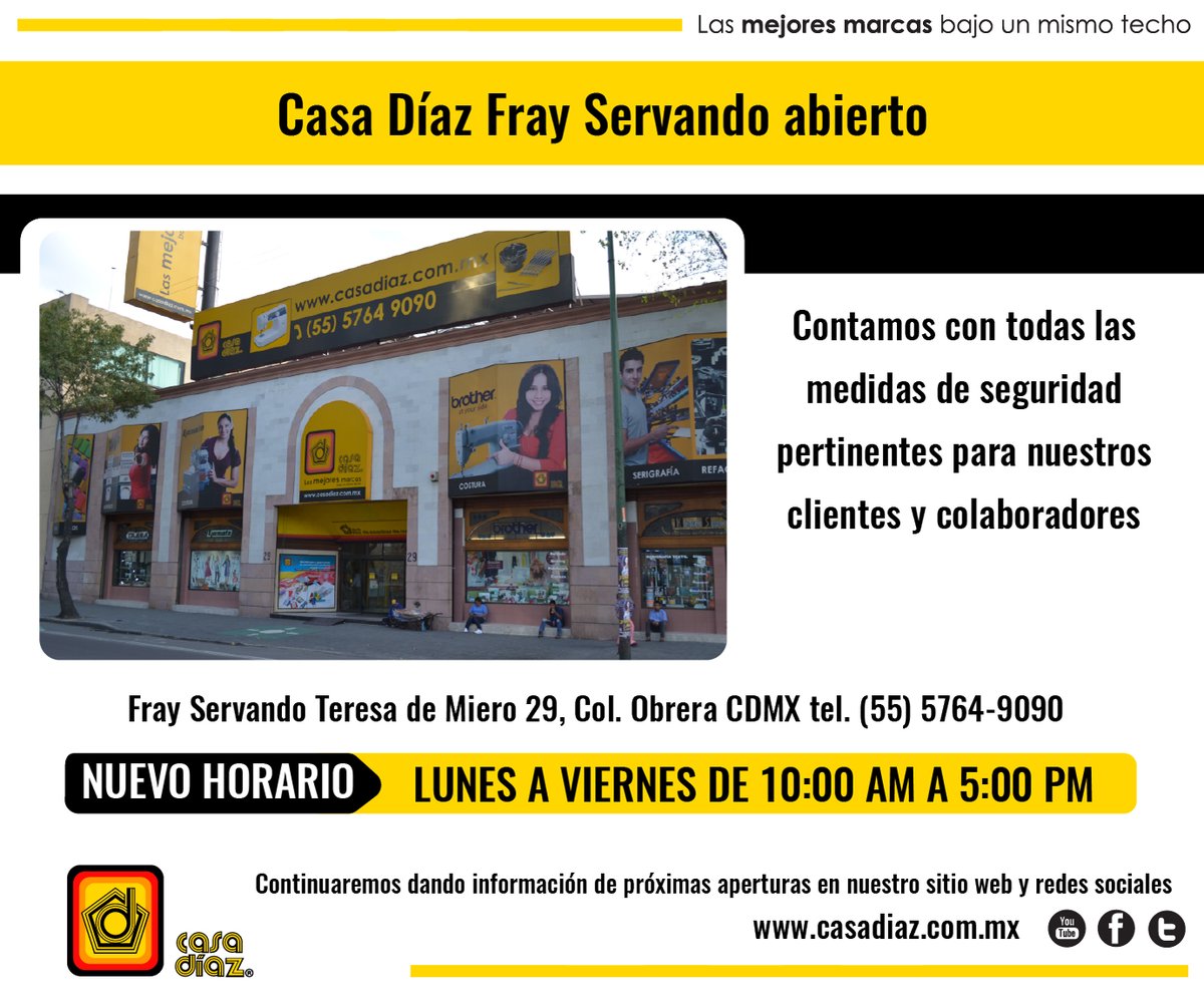 Casa díaz estará presente en expo mercería y manualidades 2019. Distribuimos máquinas de bordado costura y confección pulpos de serigrafía y equipo de planchado textil. 12 sucursales a lo largo del país. 29 colonia obrera c p.