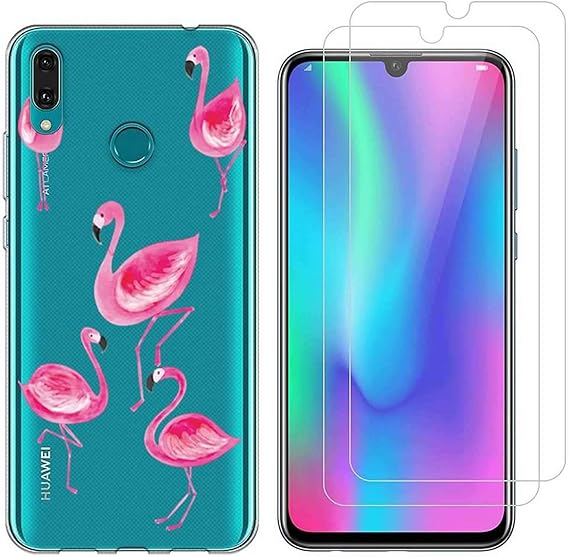Amazon Com Huawei Y7 2019 Case With 2 Pack Glass Screen Protector Phone Case For Men Women Girls Clear Soft Tpu With Protective Bumper Cover Case For Huawei Y7 2019 Flamingo