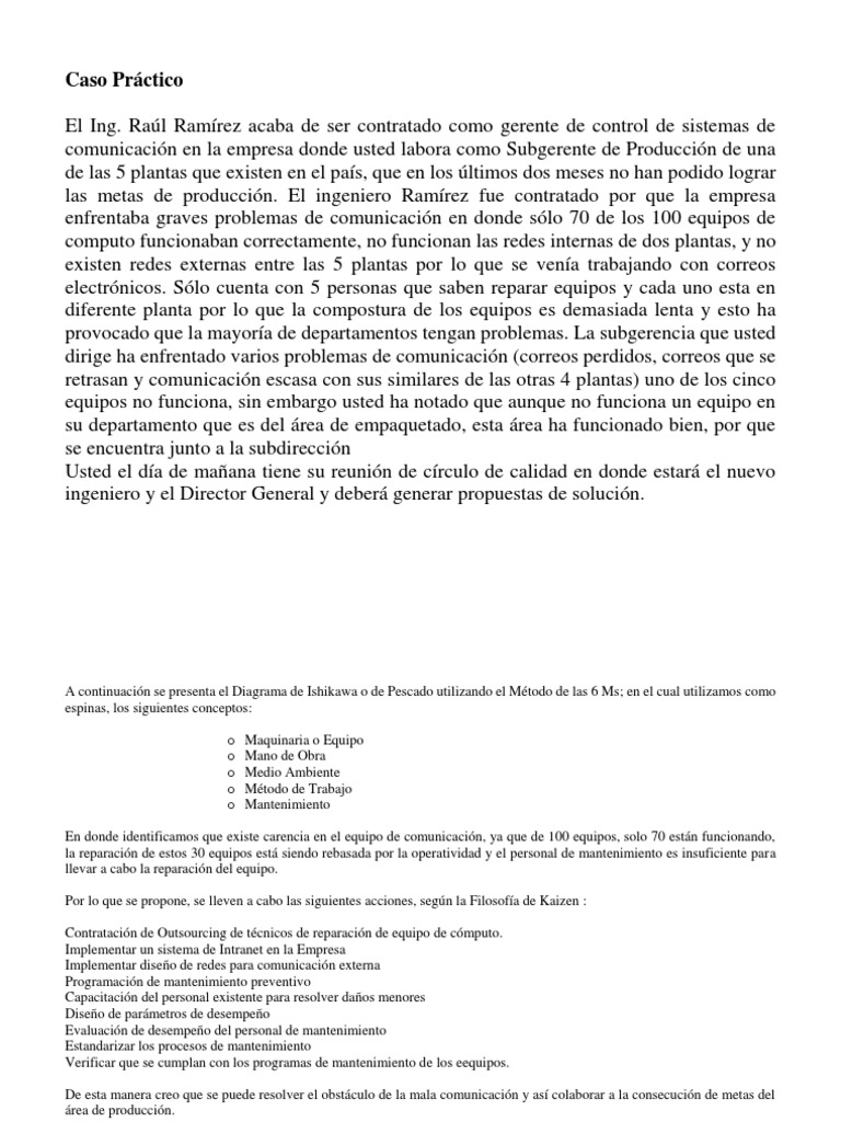 Caso Practico Aplicando Diagrama De Ishikawa