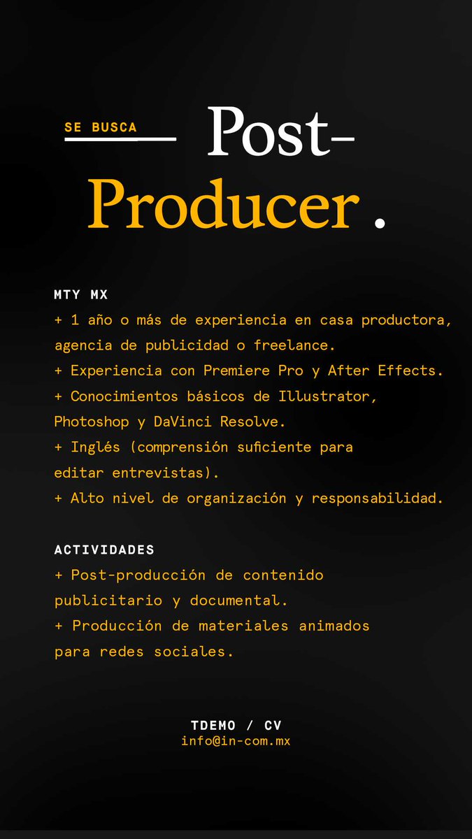 Toctoc On Twitter Se Busca Post Productor De Video En Monterrey Interesados Mandar Su Informacion A Info In Com Mx Minimo 1 Ano De Experiencia En Casa Productora Https T Co O3xvozzoh5 Empleo Https T Co Q59owboweu