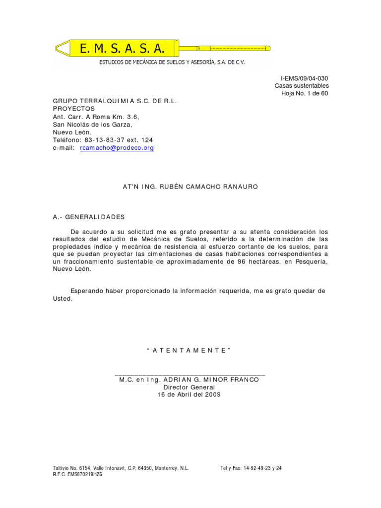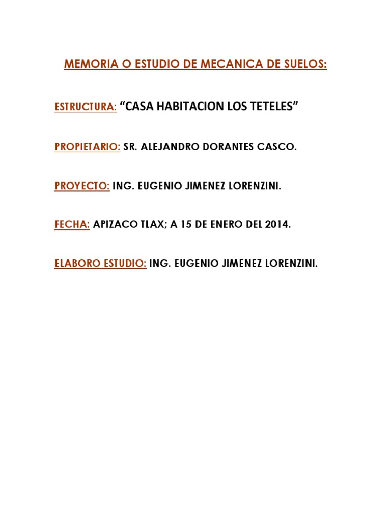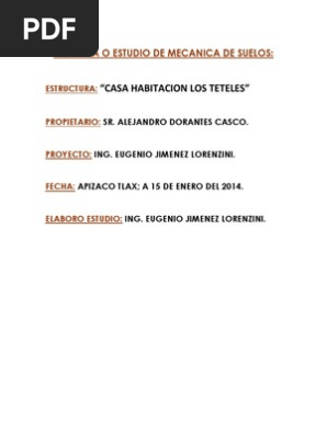 Estudio De Mecanica De Suelos De La Casa Habitacion Los Teteles 2014 Fundacion Ingenieria Ciencias De La Tierra Y De La Vida