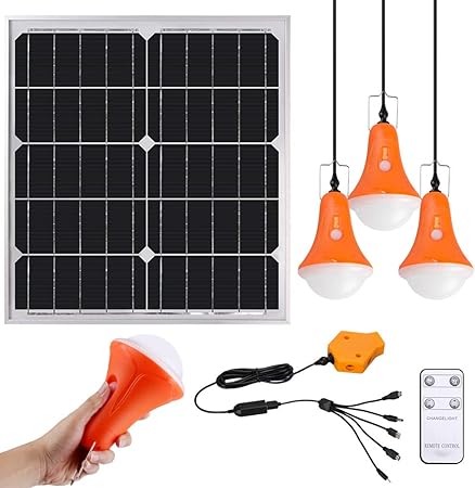 Amazon Com Gvshine Panel Solar Portatil Kit De Iluminacion Solar De 20 W Para Casas Caravanas Senderismo Huracanes Cobertizo De Emergencia Paquete De 4 Bombillas Led Recargables De 500 Lumenes Con Control Remoto