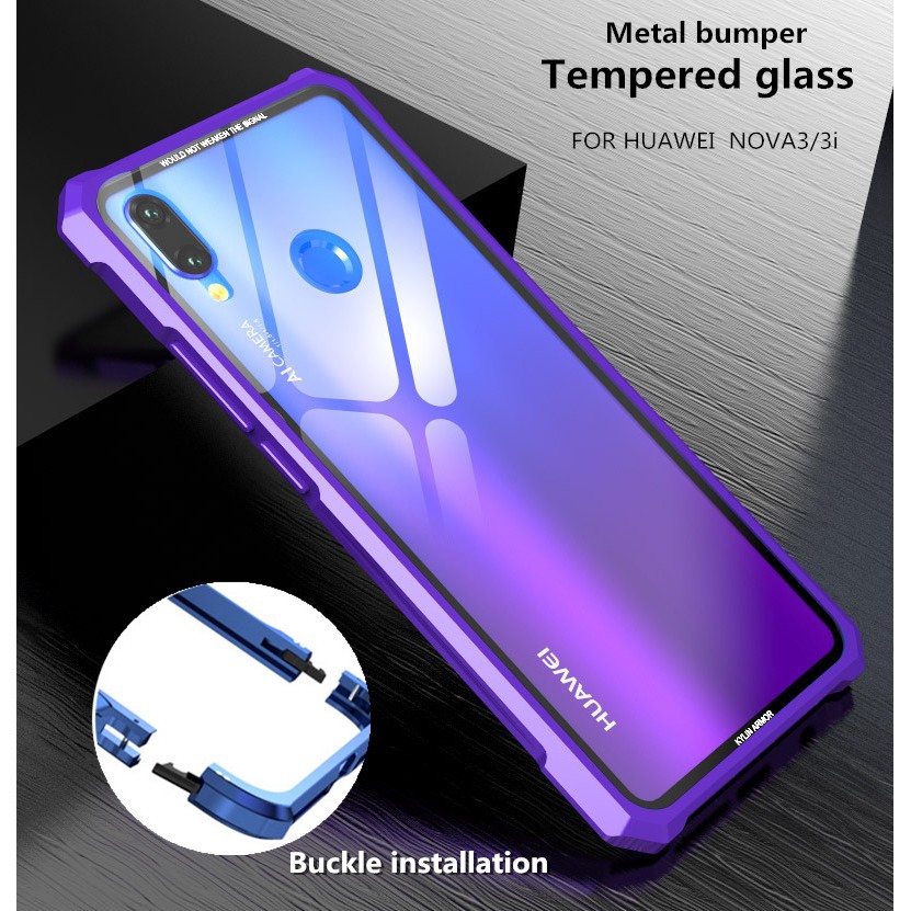 Huawei Nova 3 Nova 3i Slim Full Metal Bumper Transparent Glass Hard Phone Case Shopee Indonesia