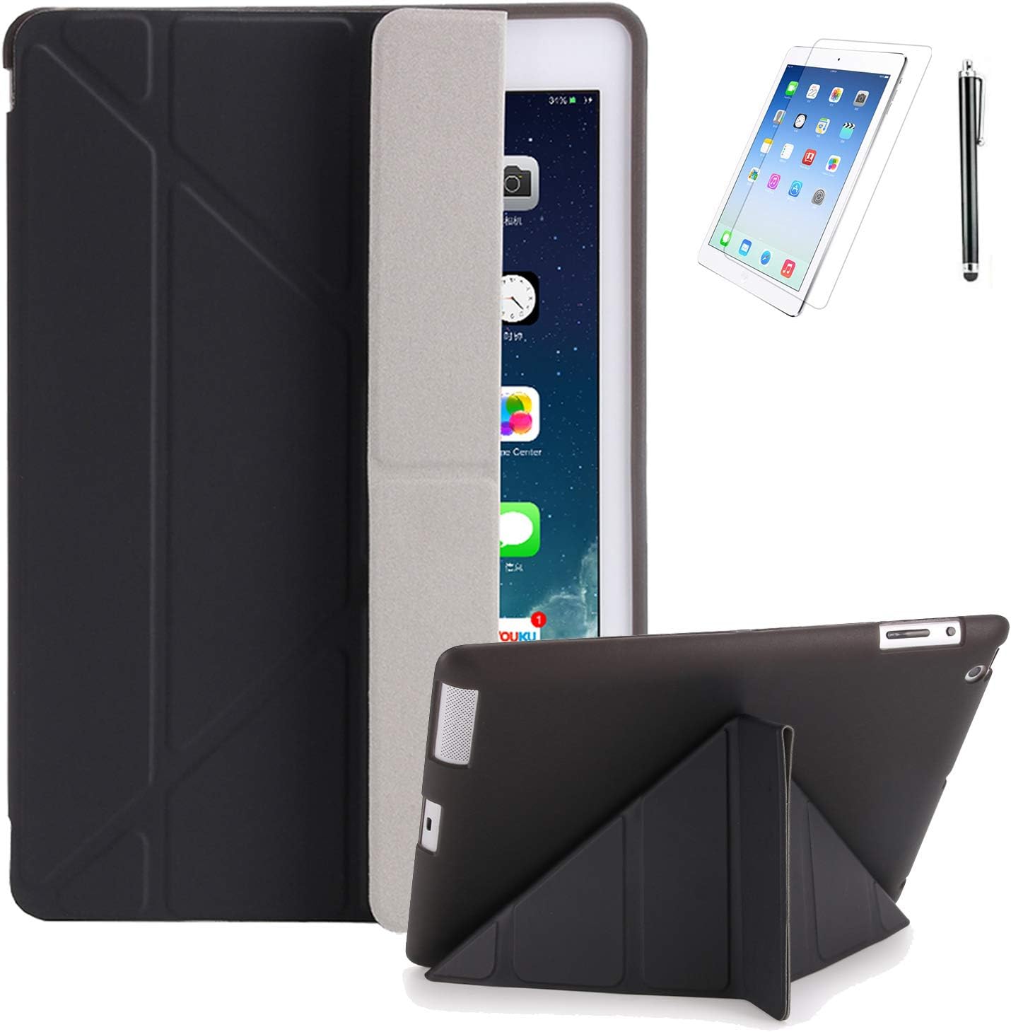 Amazon Com Ipad 4th Generation Case 2nd 3rd 9 7 Premium Smooth Ultra Origami Slim Lightweight Soft Stand Protective Folding Case With Auto Wake Sleep With Screen Protector And Stylus Black
