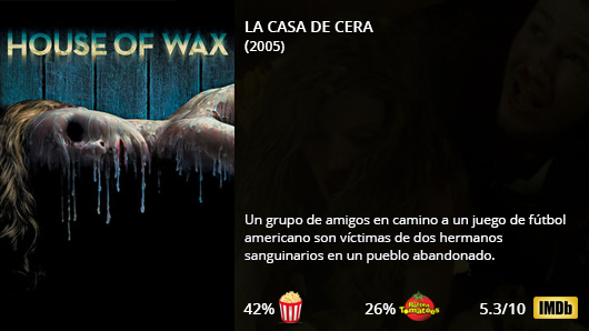 Al interactuar con este sitio aceptas el uso que hacemos de cookies. La casa de cera está en netflix. Ve tráileres y más. O filme segue a história de um grupo de amigos da faculdade que está a caminho de um jogo de futebol quando em uma cidade fantasma o carro quebra e eles são obrigados a procurar ajuda no único local aberto na cidade.