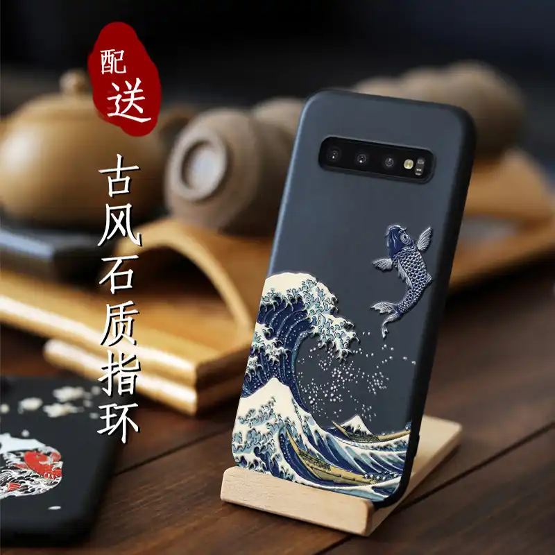 Great Emboss Phone Case For Samsung Galaxy S10 Plus S10 S10e S10 Cover Kanagawa Waves Carp Cranes 3d Giant Relief Case Aliexpress
